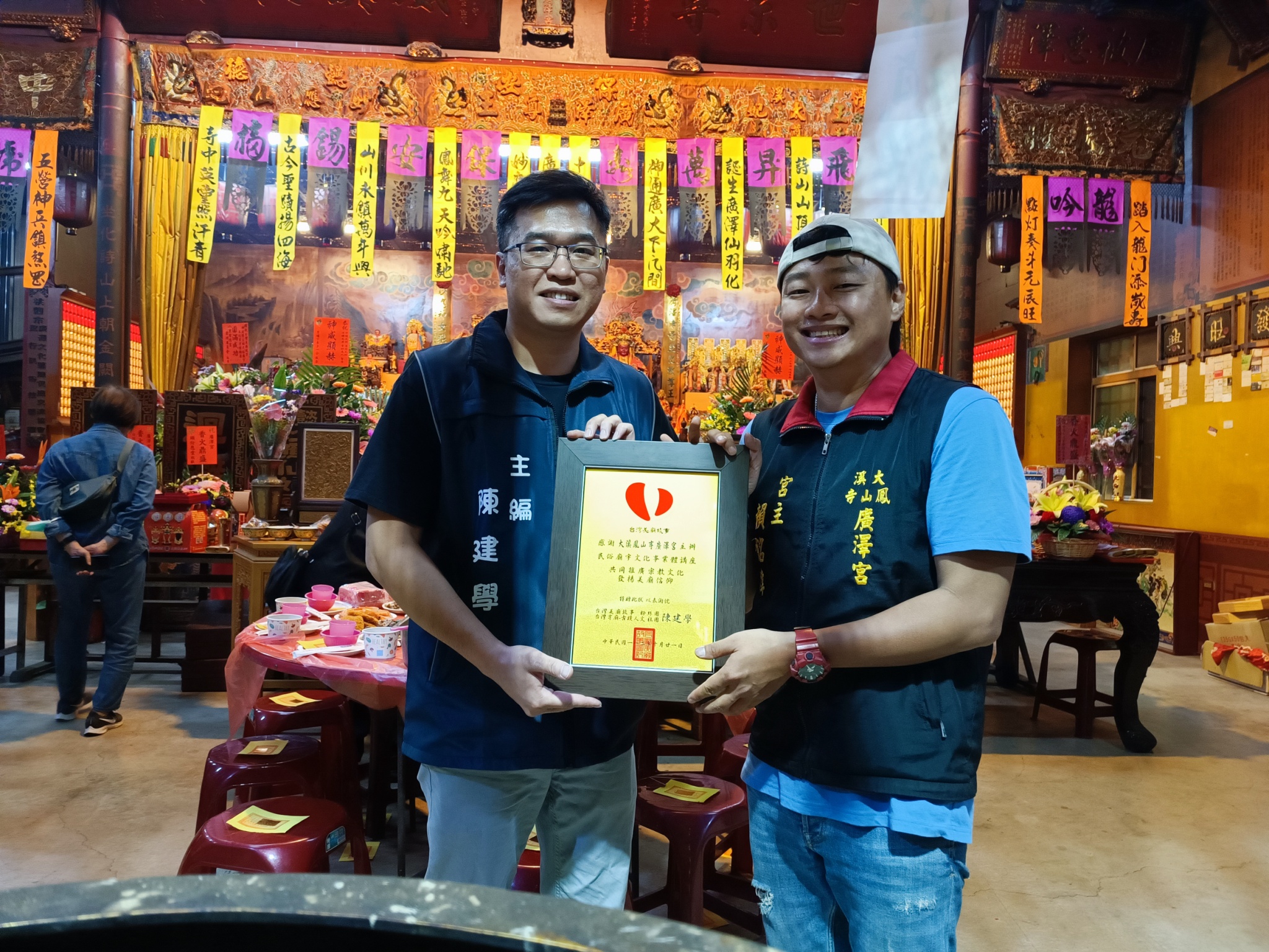 他把各宮廟小編從屏幕後拉到廟埕前,組成『小編聯誼會』:首屆在苗栗頭份永貞宮揭幕,四十間宮廟小編齊聚,從網友變同行。